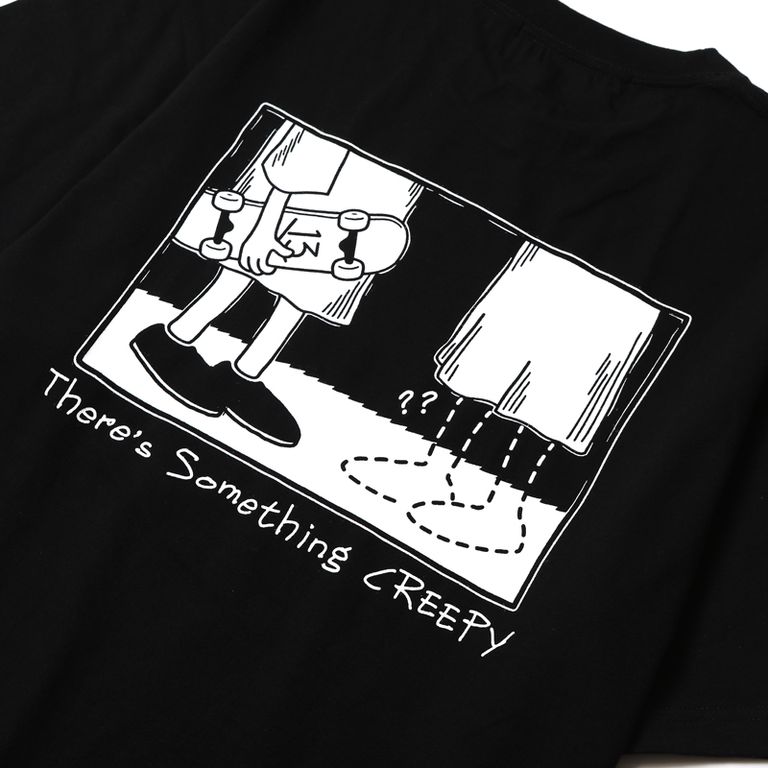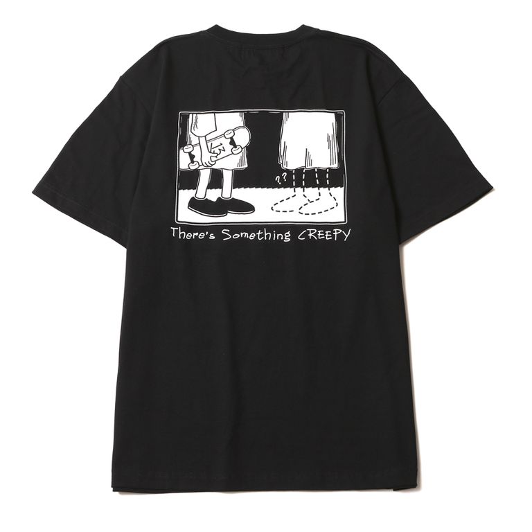 奇妙な出来事をポップなイラストで表現したTシャツ。
