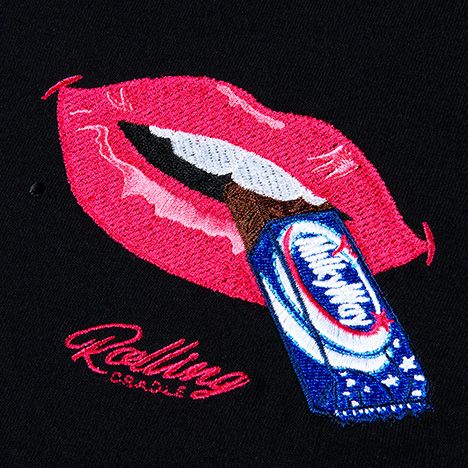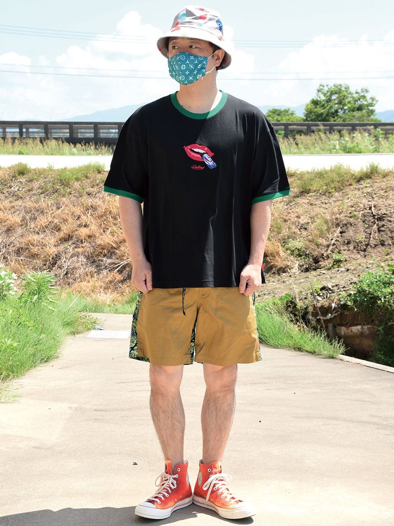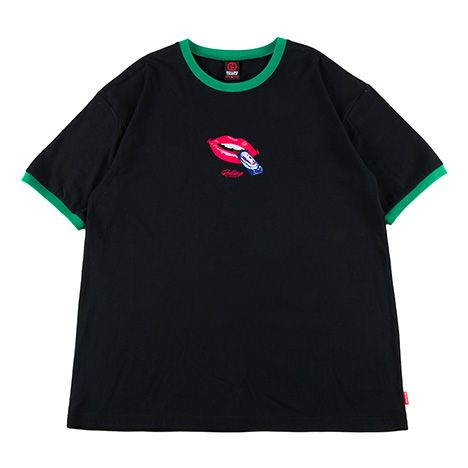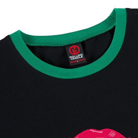 個性的な配色のリンガーTにカッコいいアイコンを刺繍。