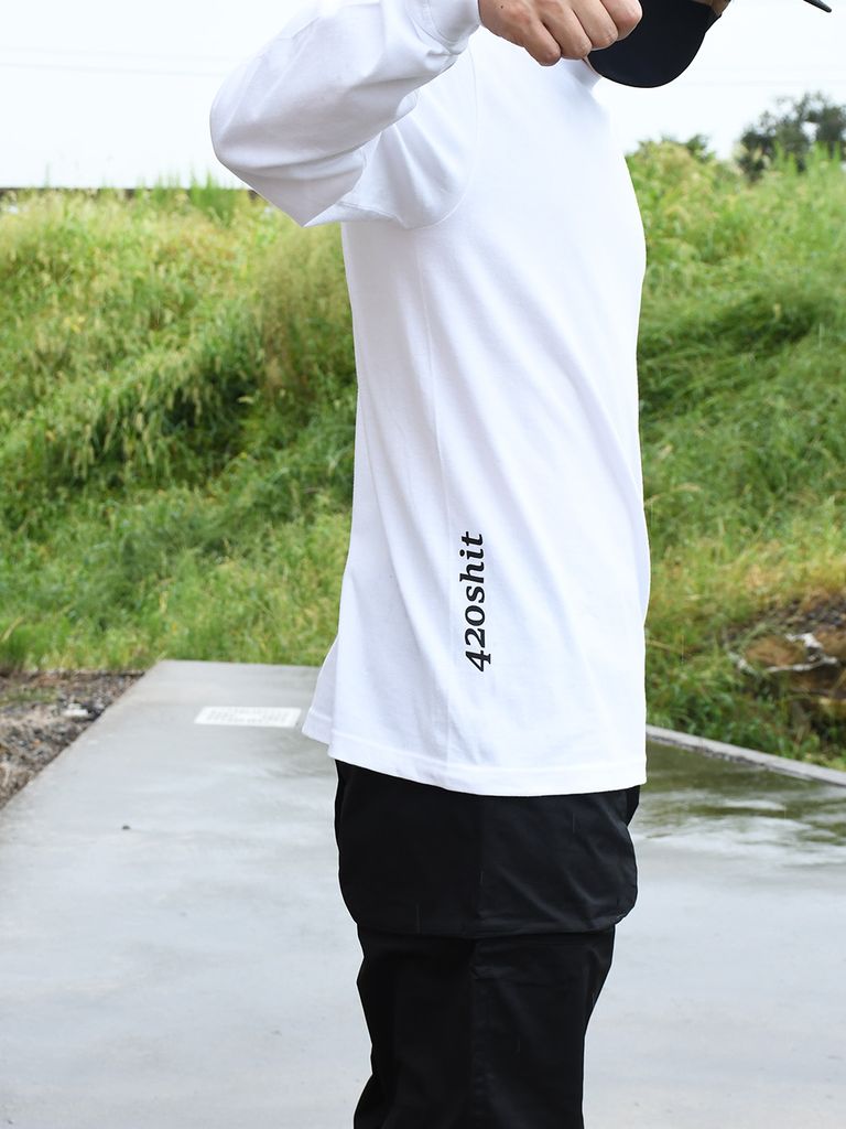 肩口に I get high with a little help、脇には420shitの文字がプリントで入ります。