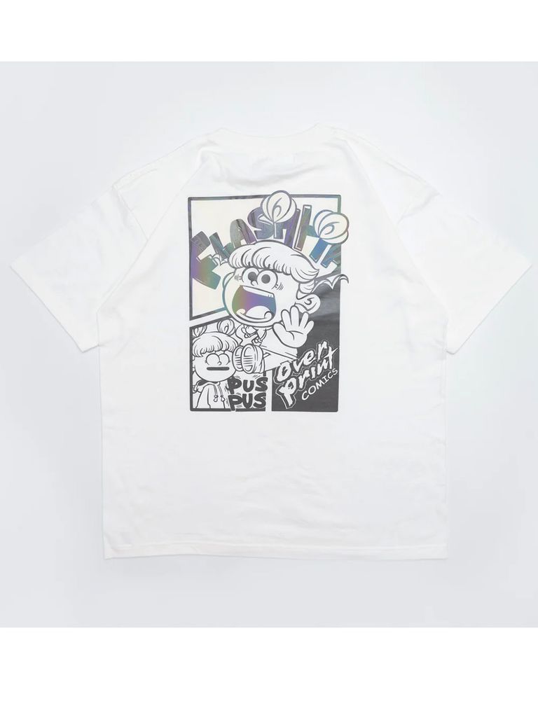 車のハイビームや、スマホのフラッシュを正面から受けるとオーロラ色にひかるオーロラリフレクタープリントを採用