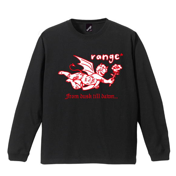 薔薇を手に持ったDevilなAngelと薔薇のプリントのグラフィック