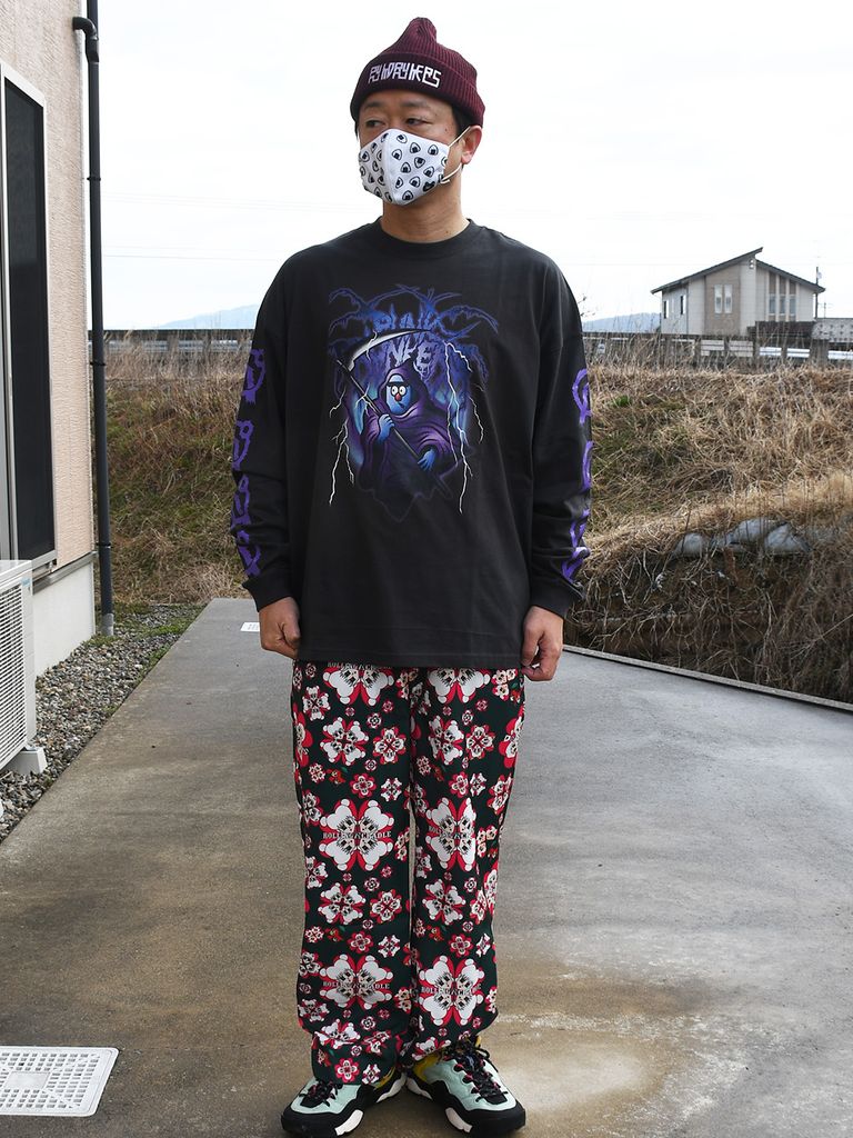 色鮮やかにインクジェットプリントされた死神の格好をしたサム。