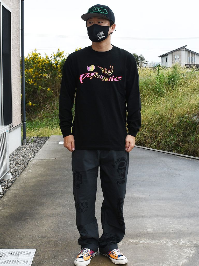 psychoとPsychedelicを掛け合わせた造語psychodelicをサイケなスタイルでプリント。
