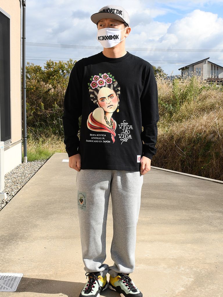 フロントに「素晴らしき人生」などを意味するスペイン語の常套句。今季のメイングラフィックでもあるメキシコ画家のフリーダ・カーロへ思いを馳せたグラフィックが入るモデル。