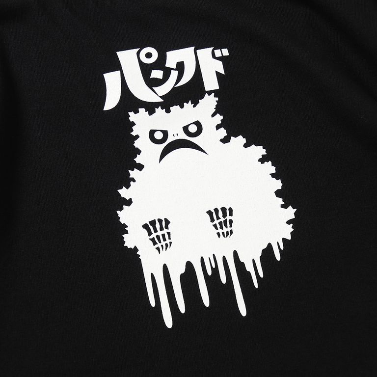 スケボーに乗ったレッドキングと、バックプリントにはピグモン。