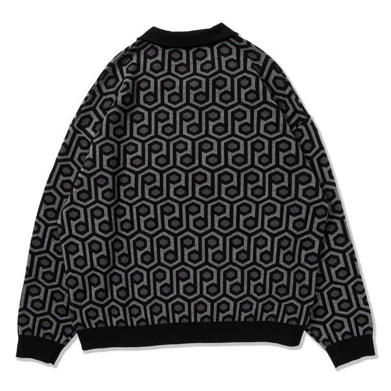 なんだかホラーを感じる総柄長袖ポロシャツ。