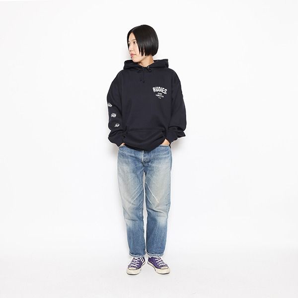 裏起毛のフードスウェットにTHICK PAHTロゴを配しました。