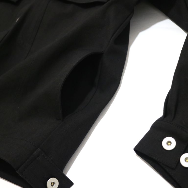 ストレッチの効いた生地と背中のプリーツで、デニムジャケットにありがちな窮屈さを解消。