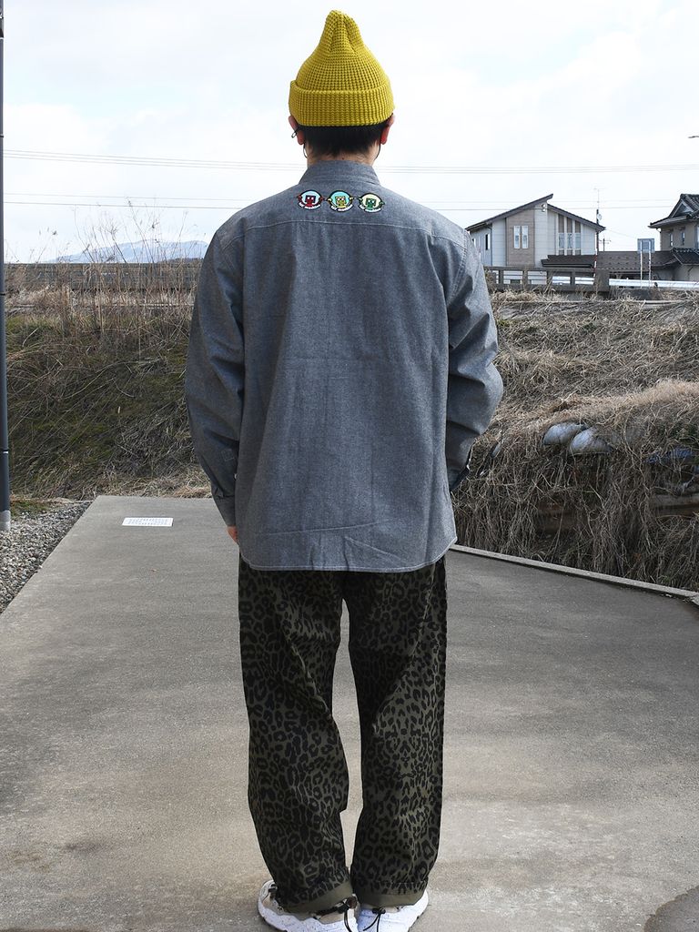 可愛らしい刺繍が施されたダンガリーシャツ。