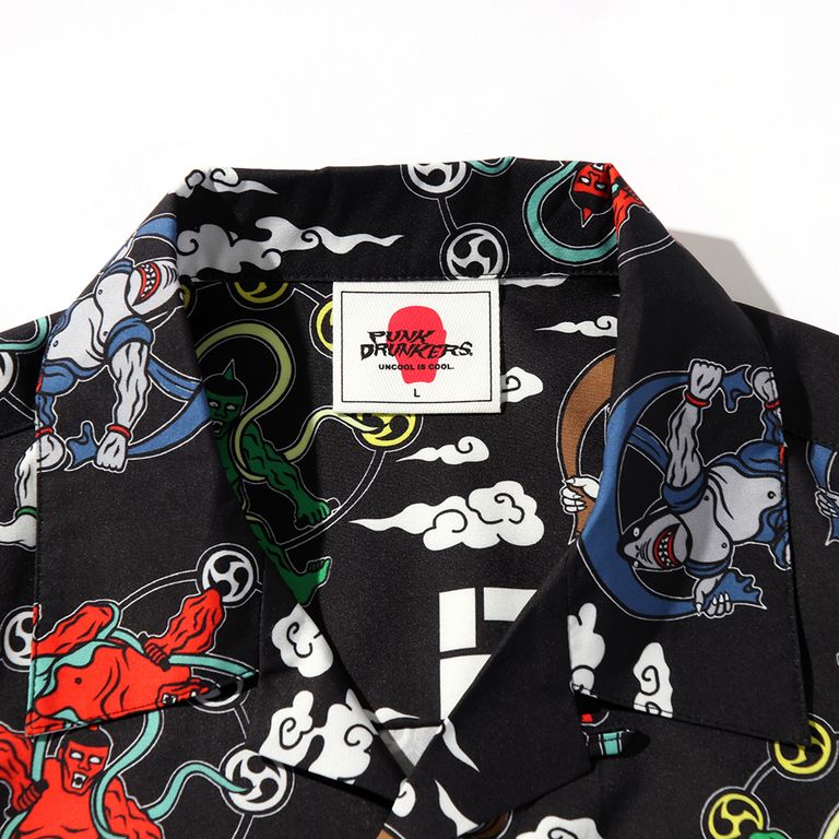 鮫人(サメンチュ)風神と、アイツ雷神の総柄アロハシャツ