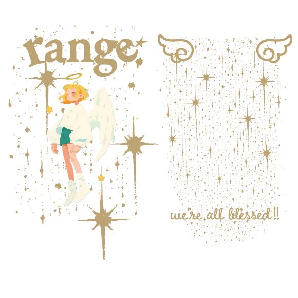 背中にはAngelの翼とFalling starsと我々は皆祝福されているというメッセージ入りのTシャツ。