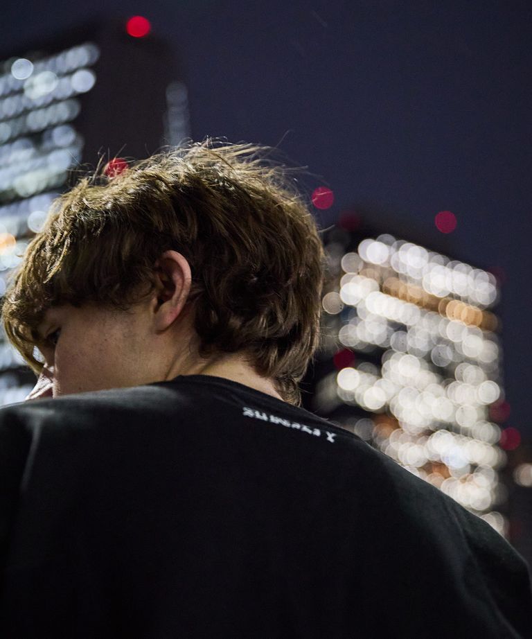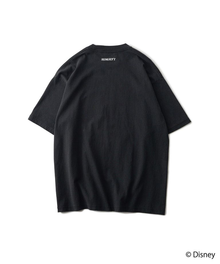 ブラックマジック手法によりブラックボディに立体的に浮かび上がるビジュアルが特徴。フロストブリーチ加工を施し、着こんだヴィンテージの雰囲気を表現。独特の毛羽立ち、アタリが魅力の一着。バックネックにはブランドロゴをプリントでオン。