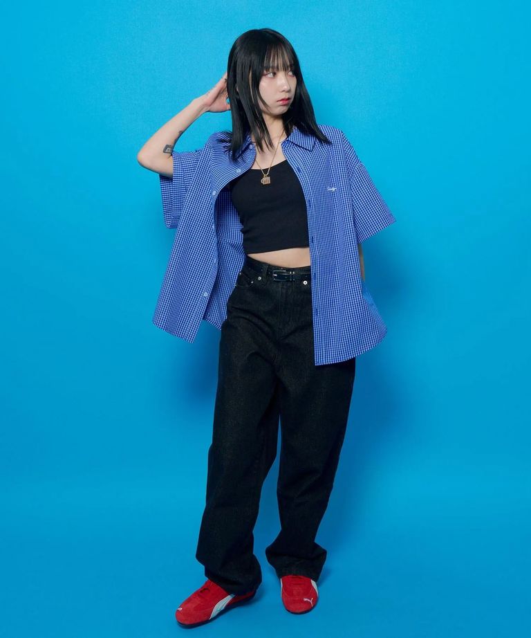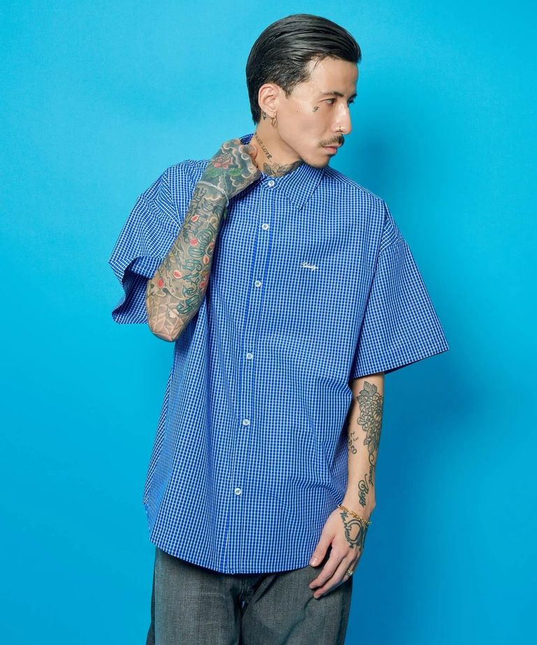 シンプルなミニチェック柄のシャツ。シンプルがゆえにスタイリングを選ばない一着。