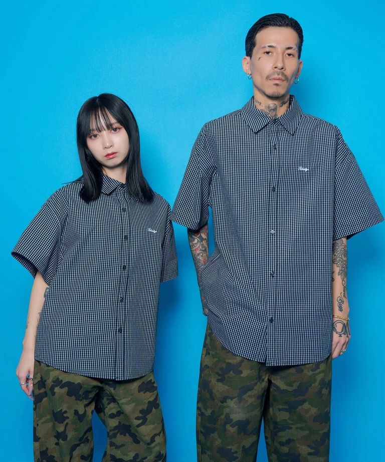 シンプルなミニチェック柄のシャツ。シンプルがゆえにスタイリングを選ばない一着。