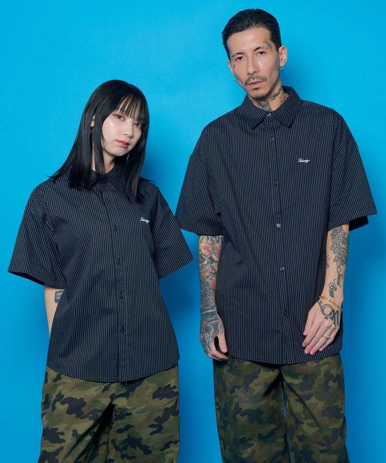 シックなピンストライプのラウンドテールシャツ。シンプルでスタイリングを選ばない一着。