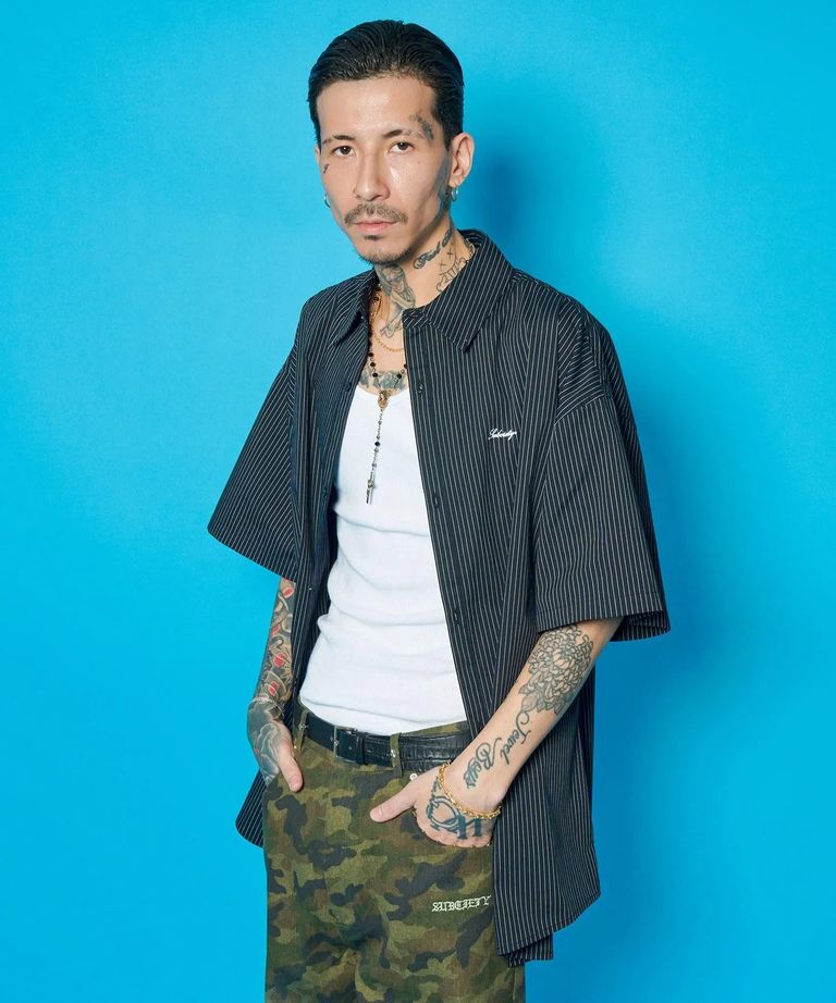 左胸にはタイポグラフィロゴを刺繍で施し、裾にはシグネイチャーカラーである緑のピスタグを配備。