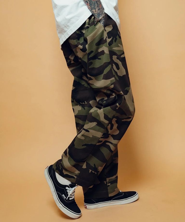 フロントは利便性の高いジップフライに変更、ヒップポケットのフラップを削除し、ツータック、ワイドシルエット等のディテールは継承。太めのわたりから、ストリートらしさも残した綺麗なテーパードシルエット。