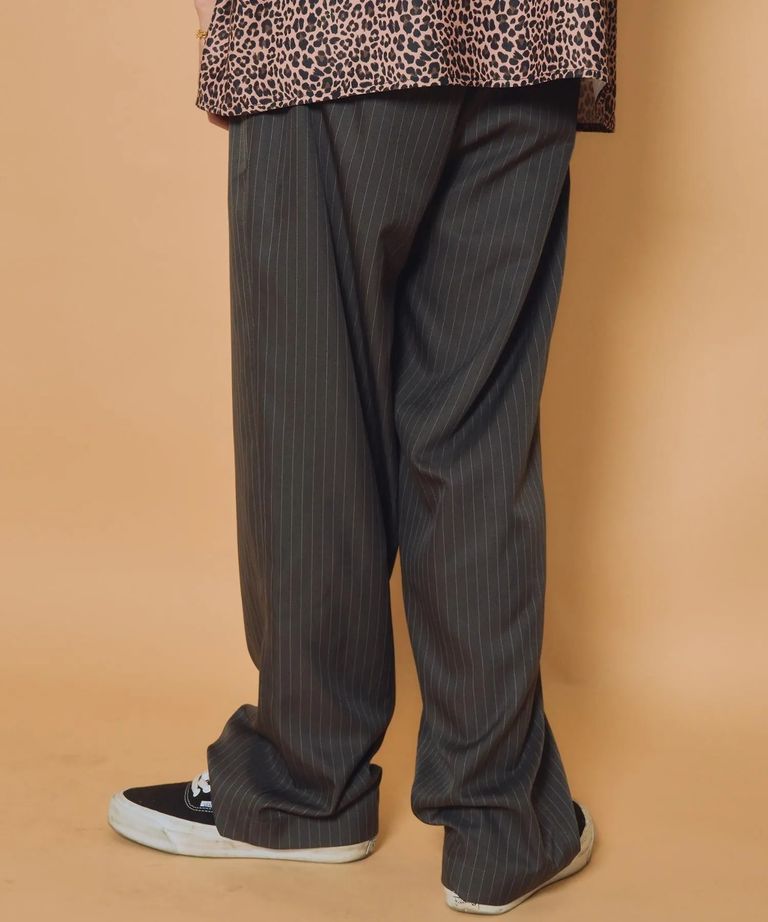 フロントは利便性の高いジップフライに変更、ヒップポケットのフラップを削除し、ツータック、ワイドシルエット等のディテールは継承。太めのわたりから、ストリートらしさも残した綺麗なテーパードシルエット。