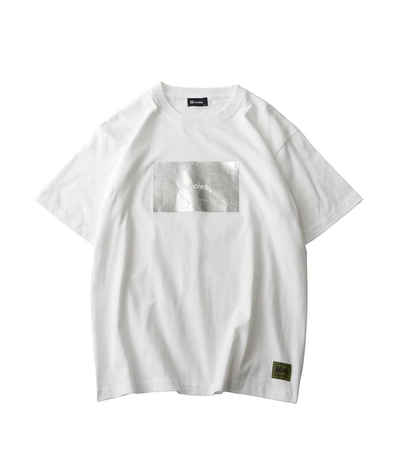 黄金律である1:1.618のボックスにロゴを配した『RATIO』のグラフィックをひび割れした箔プリントでオン。ニュアンス感があり、女性にもおすすめの一枚。