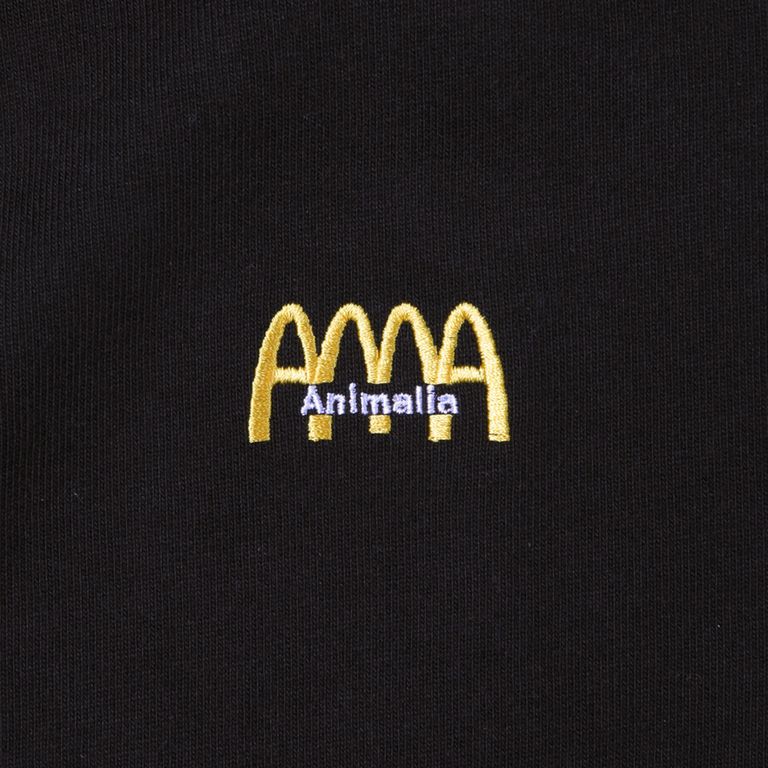 太い糸を編み込んで作った10.2ozスーパーヘビーウェイトポケットtee。重厚感があり、生地の段階で洗いをかけてから縫製する事で柔軟性も持ち合わせた存在感のあるボディ。襟リブも2.2cm巾あるしっかりとした作り。胸にANIMALIAの文字を某ハンバーガショップのロゴに落とし込んだロゴ刺繍が入るモデル。