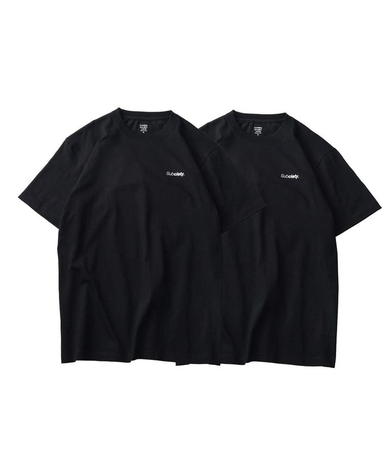 5.6オンスの天竺生地を採用したS/S TEE。左胸と襟部分にプリントを施したシンプルなデザイン。ホワイトとブラックの定番色を2枚セットにしたアイテム。初めてのSubcietyにも、ギフトにも最適。