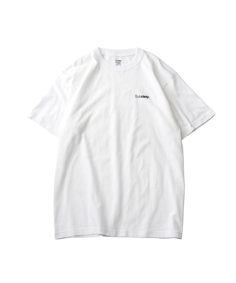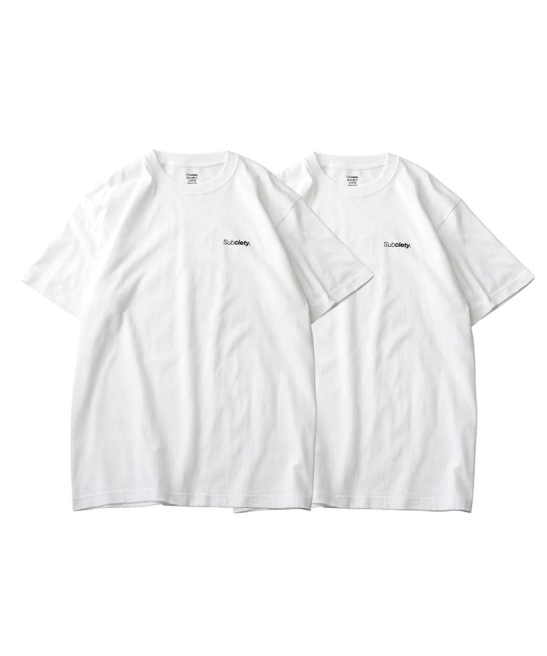 5.6オンスの天竺生地を採用したS/S TEE。左胸と襟部分にプリントを施したシンプルなデザイン。ホワイトとブラックの定番色を2枚セットにしたアイテム。初めてのSubcietyにも、ギフトにも最適。