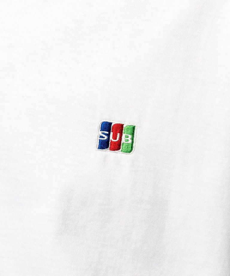 6.5オンスの毛羽立ちの少ないコンパクトコーマ糸の天竺生地を採用。左胸には架空のカード会社をモチーフにしたロゴグラフィックを刺繍で施しました。
