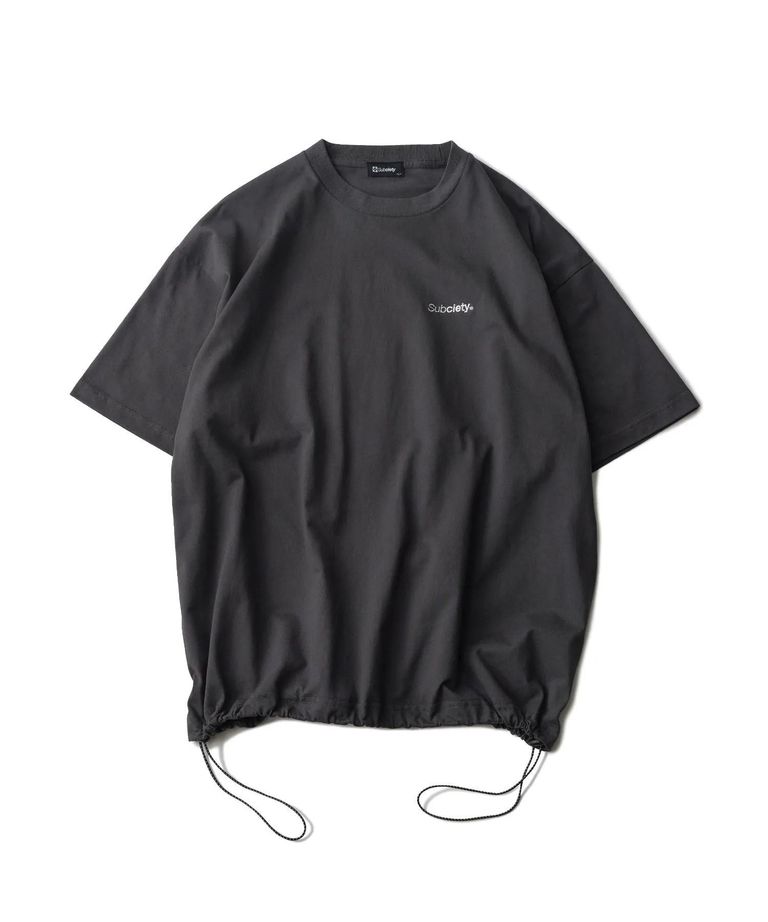左右の裾口にドローコードを配備したS/S Tシャツ。自由に裾のシルエットを調整可能。6.5オンスの度詰めの天竺生地を採用。ドロップショルダーのゆったりとしたシルエット。