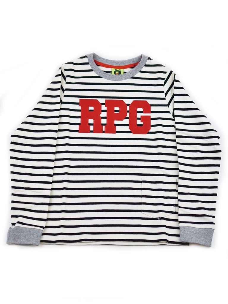 OJISUNの人気の3文字シリーズ今回は【R.P.G】。ロールプレイングゲームの略ですね。好きな人多いんじゃないでしょうか?生地は少し肉厚な度詰めボーダーです。様々なシーンで大活躍間違い無し!!合わせやすい1枚です。